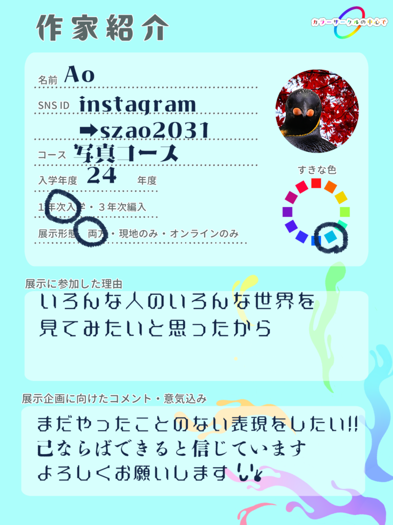 ホーム展示者展示者:オンライン、現地 Ao 関連リンク Instagram:szao2031 このページのURLをコピー 他の展示者も見る hinase 展示者:現地限定 せい 展示者:オンライン、現地 てんちゃ 展示者:オンライン、現地 もっと他の展示者を見る